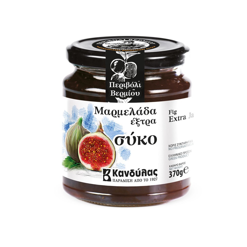 Dulceața KANDYLAS este produsă după o selecție de fructe de calitate excelentă din pământul grecesc. Aceasta este o dulceață suplimentară deoarece conținutul său de fructe depășește 55% și nu conține conservanți. Astfel, dulceața de smochine conține peste 55% fructe grecești.