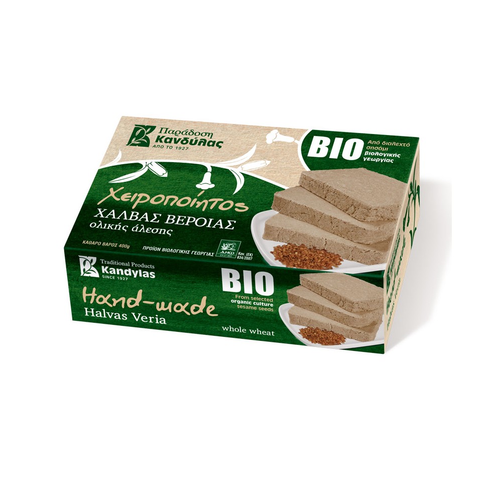 Halva organică KANDYLAS respectă toate specificațiile produselor organice, menținându-și în același timp natura sănătoasă și, desigur, gustul unic. Halva organică KANDYLAS este disponibilă cu vanilie, migdale, cacao, miere și integrală.