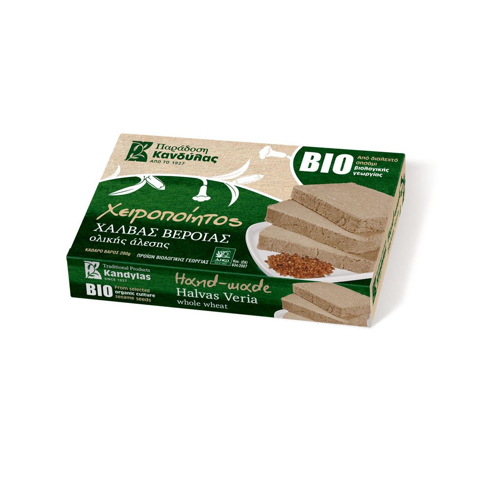 Halva organică KANDYLAS respectă toate specificațiile produselor organice, menținându-și în același timp natura sănătoasă și, desigur, gustul unic. Halva organică KANDYLAS este disponibilă cu vanilie, migdale, cacao, miere și integrală.