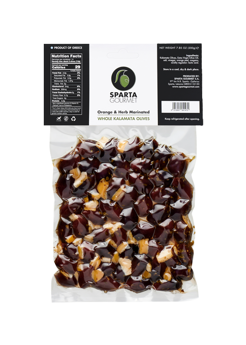 Sparta Gourmet 200g, măsline Kalamata cu ierburi și portocale în vacum