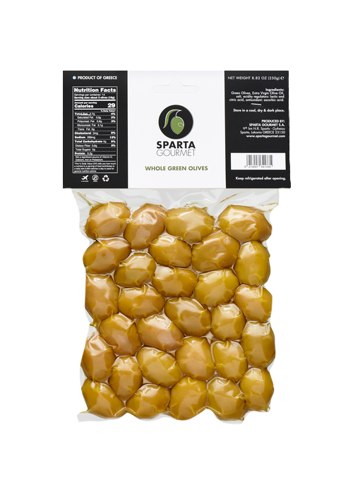 Aceste măsline verzi provin din livezile însorite ale Greciei, unde solul fertil și briza marină dau naștere unui gust inconfundabil – ușor sărat, fructat și plin de prospețime.